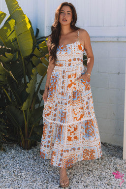 Regular price $35.00 USDRegular priceUnit price / perSale price $35.00 USDOrange Multi Printed Spaghetti Straps Maxi Dress